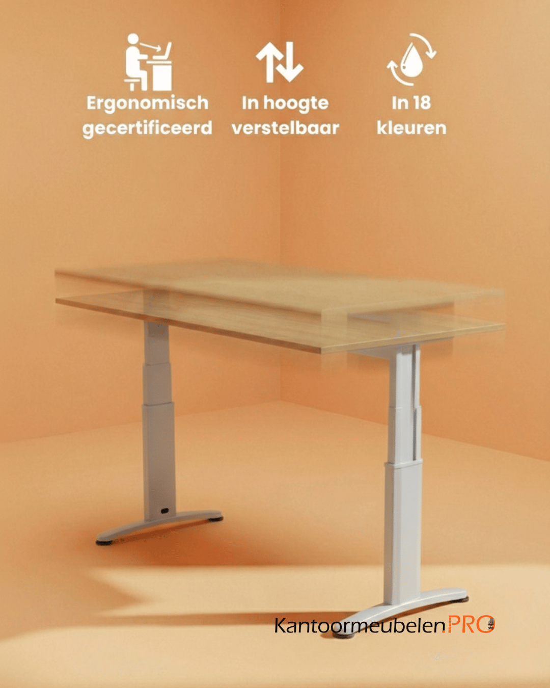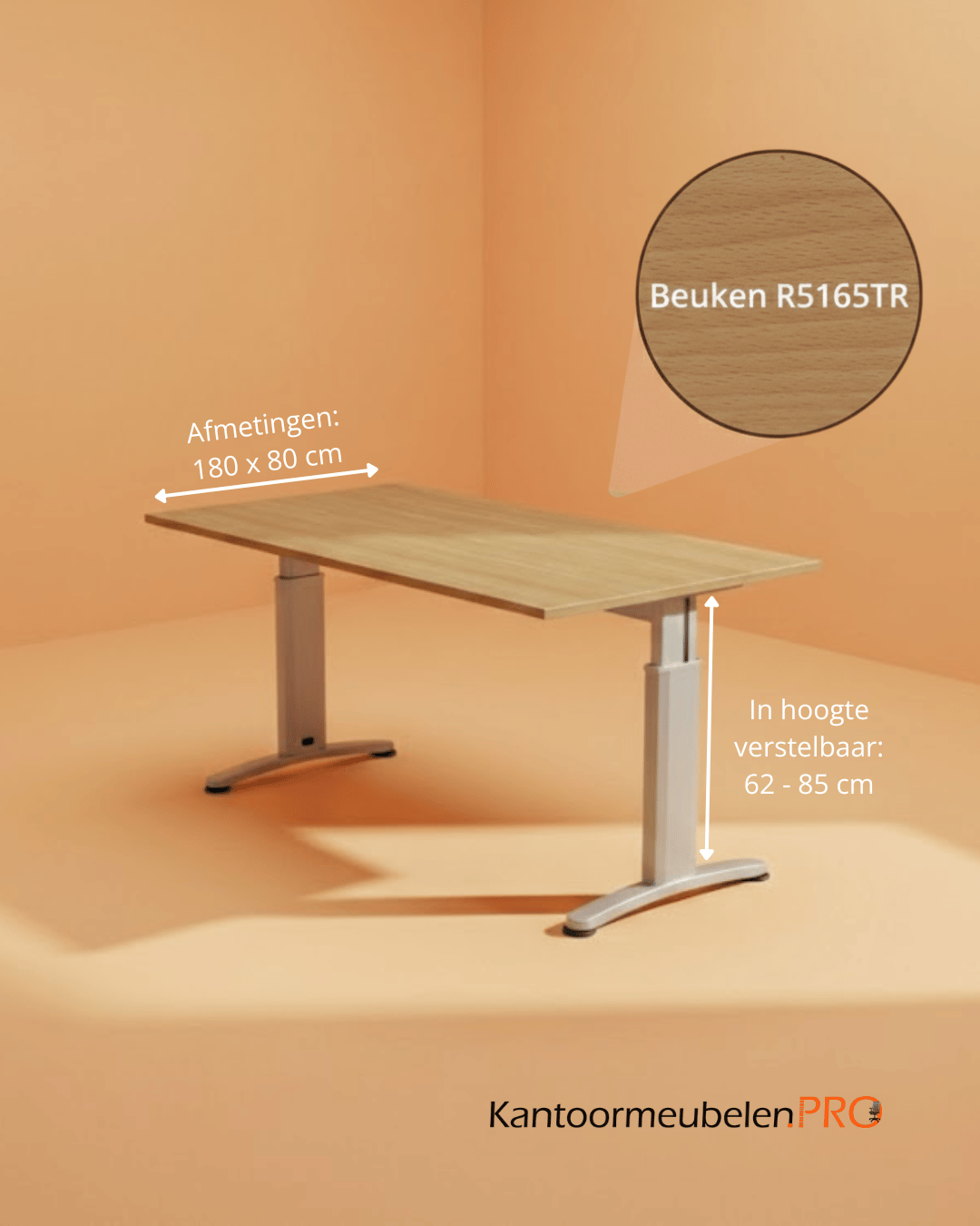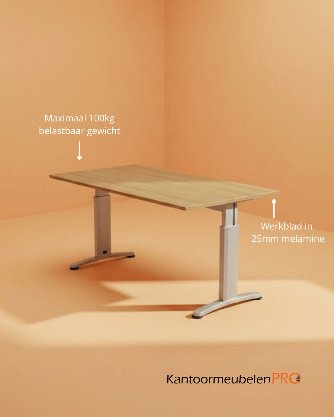 De bureaus die je bij Kantoormeubelen PRO kunt bestellen zijn allen van uitstekende kwaliteit. Zo ook de Ergonomische Bureautafel 180x80cm. Dit stijlvolle bureau biedt plaats aan 1 persoon. Door de ergonomische vormgeving werk je in een goede houding aan dit bureau. Zo ontstaan en geen lichamelijke klachten. Doordat het bureau gemakkelijk in hoogte verstelbaar is, kun je diverse werkzaamheden aan dit bureau uitvoeren. Goedgekeurd door het TRN (TUV Rheinland Nederland) volgens de NEN-EN527 en de Nederlandse praktijkrichtlijn NPR1813.
