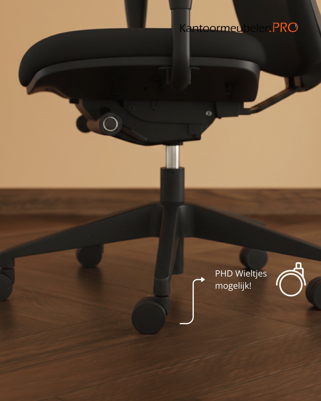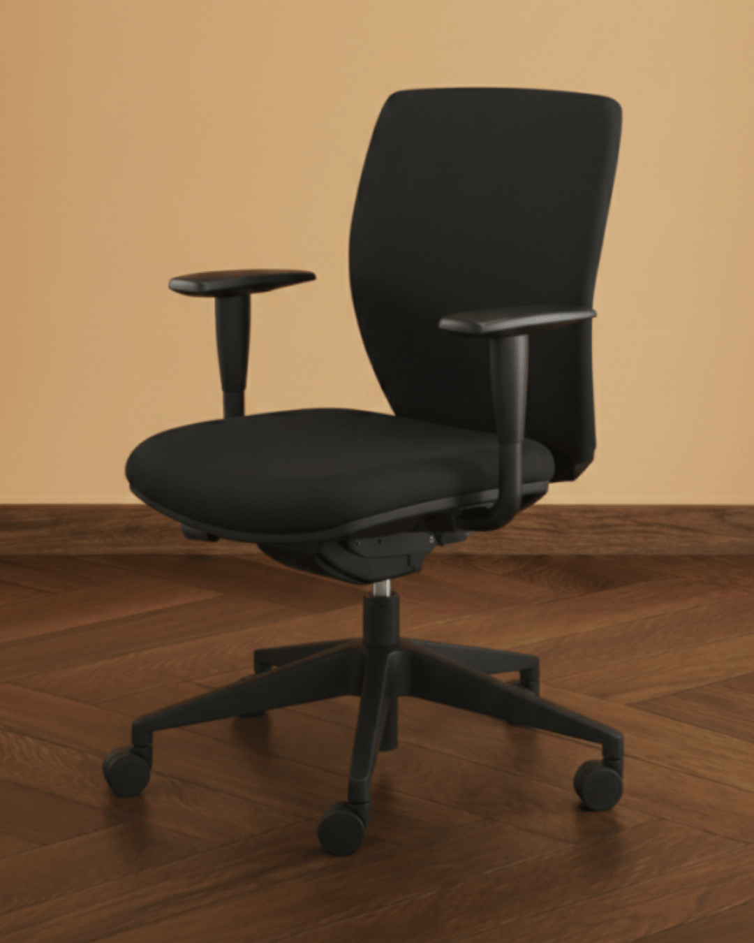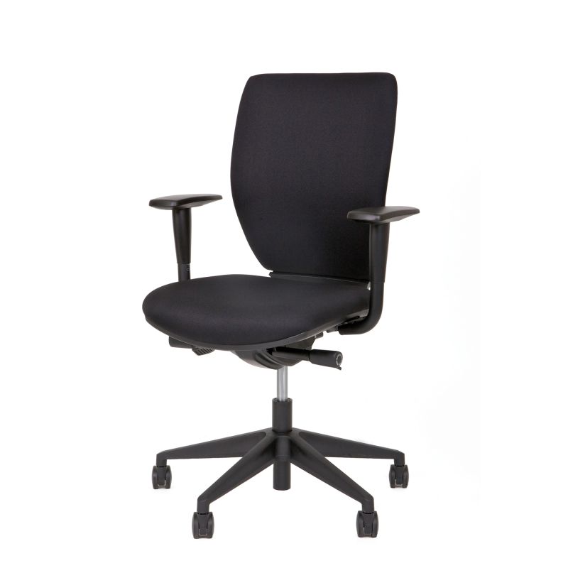 Deze bureaustoel wordt standaard geleverd MET in hoogte verstelbare armleggers in de stofkleur zwart.