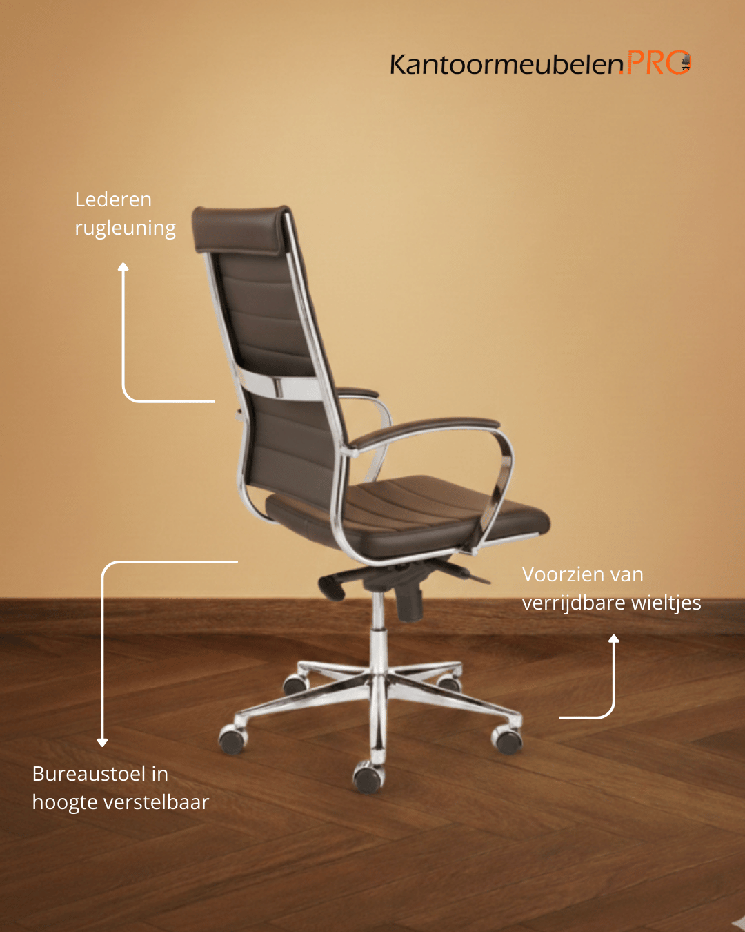 De design bureaustoel zwart hoge rug is een design bureaustoel met een hoge rug. Deze originele bureaustoel is in het bruin, wit en zwart kunstleder verkrijgbaar. Een bureaustoel met stijlvolle gebogen armleuningen in hoogglans chroom. De prachtige moderne vormgeving, het hoge zitcomfort en de kunstlederen bekleding maakt deze bureaustoel tot een top product dat ieder bureau een professionele uitstraling geeft.